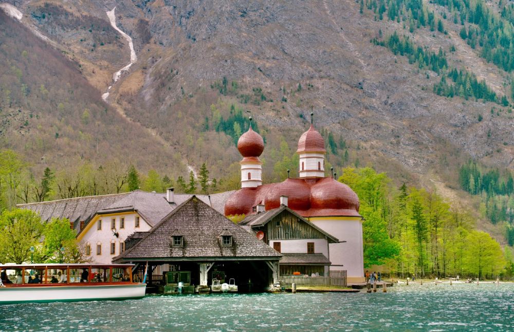 ▲ Konigssee is a famous tourist destination in Germany. Located in the southeastern tip of Bavaria, it borders the German-Austrian town of Berchtesgaden and lies within the German Alps south of Salzburg, Austria. The lake's crystal-clear emerald-green waters are renowned as "Germany's cleanest and most beautiful lake." During a cruise, visitors can admire the steep surrounding peaks and picturesque lakeside scenery. When the cruise approaches the Echo Wall, the captain plays a trumpet, creating a unique musical echo through the valley.