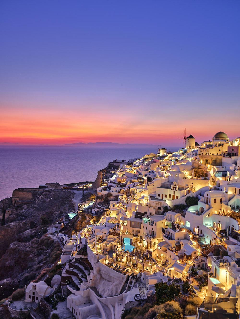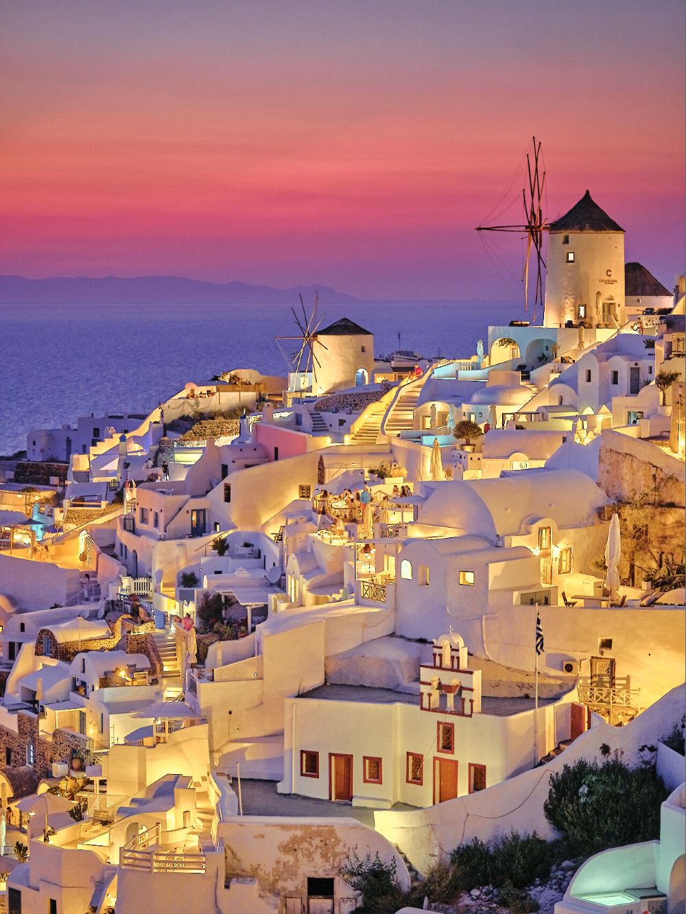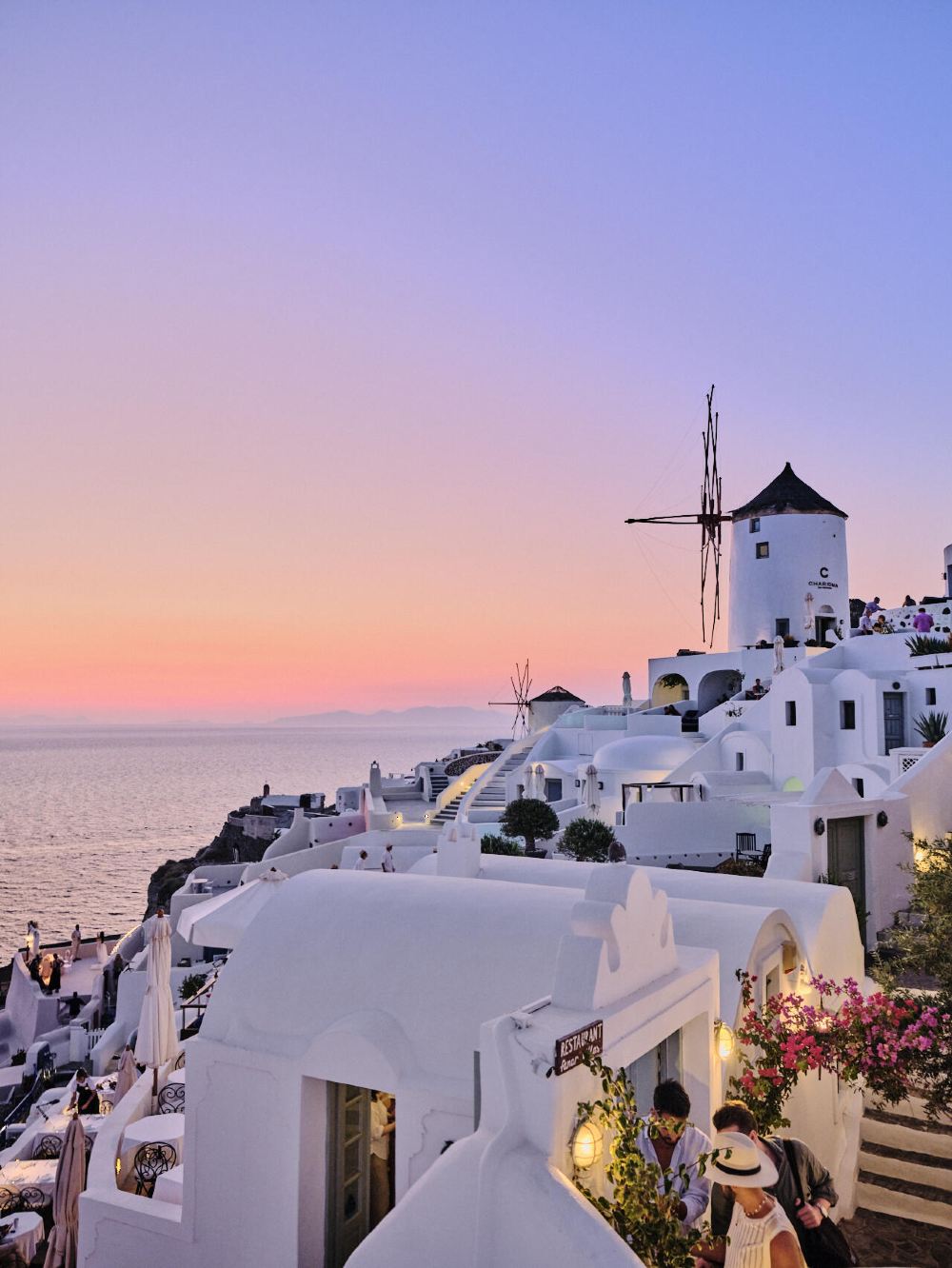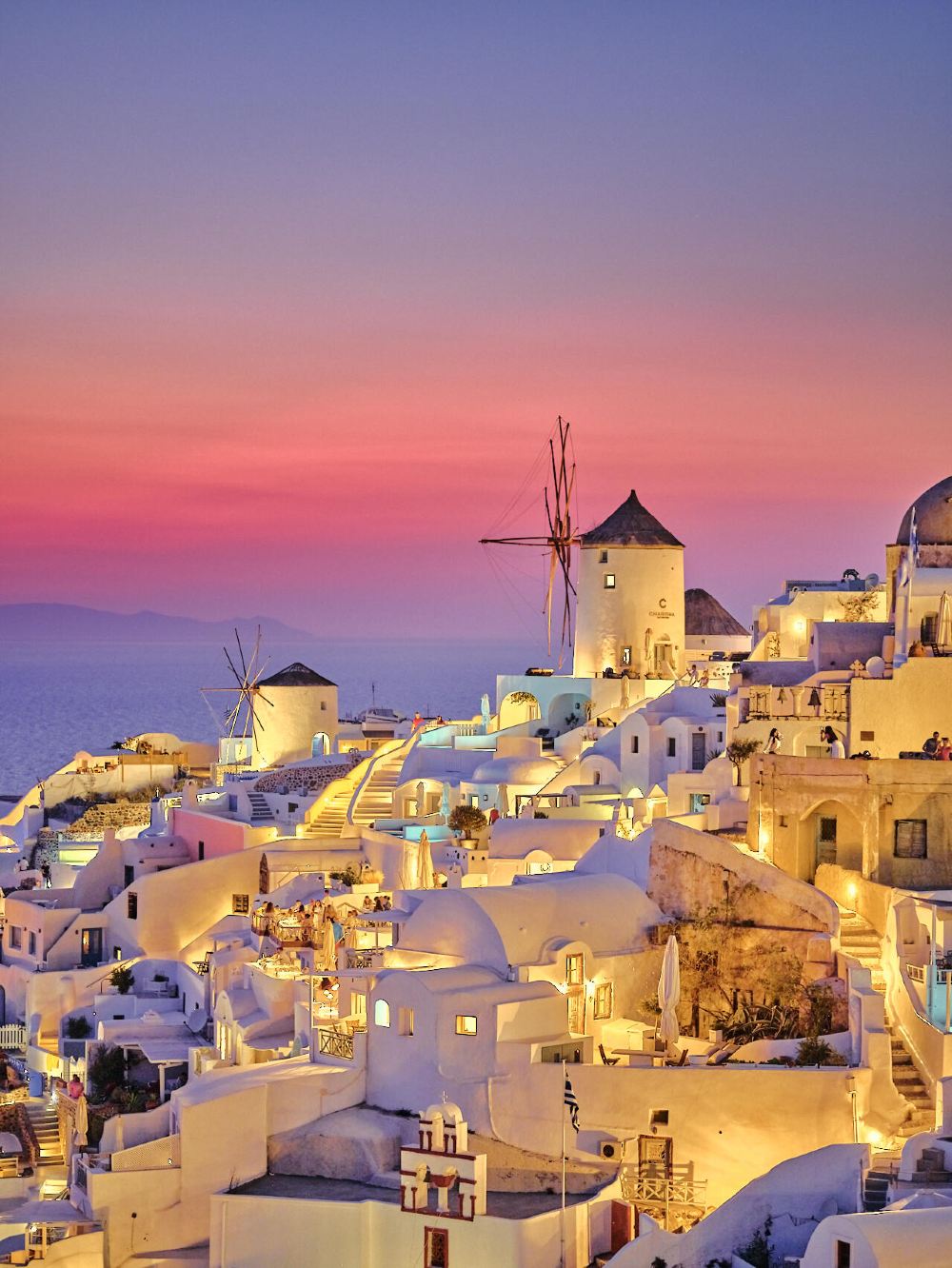 ▲ At the northern tip of Santorini lies the large town of Oia. Unlike the more commercialized Fira, most visitors come here primarily to admire the sunset. It is said that one can witness the "sunset sinking into the Aegean Sea" here. The sunset views in Oia have inspired many artists and photographers. The white houses, blue-domed churches, and traditional windmills bathed in the glow of the setting sun never fail to captivate.