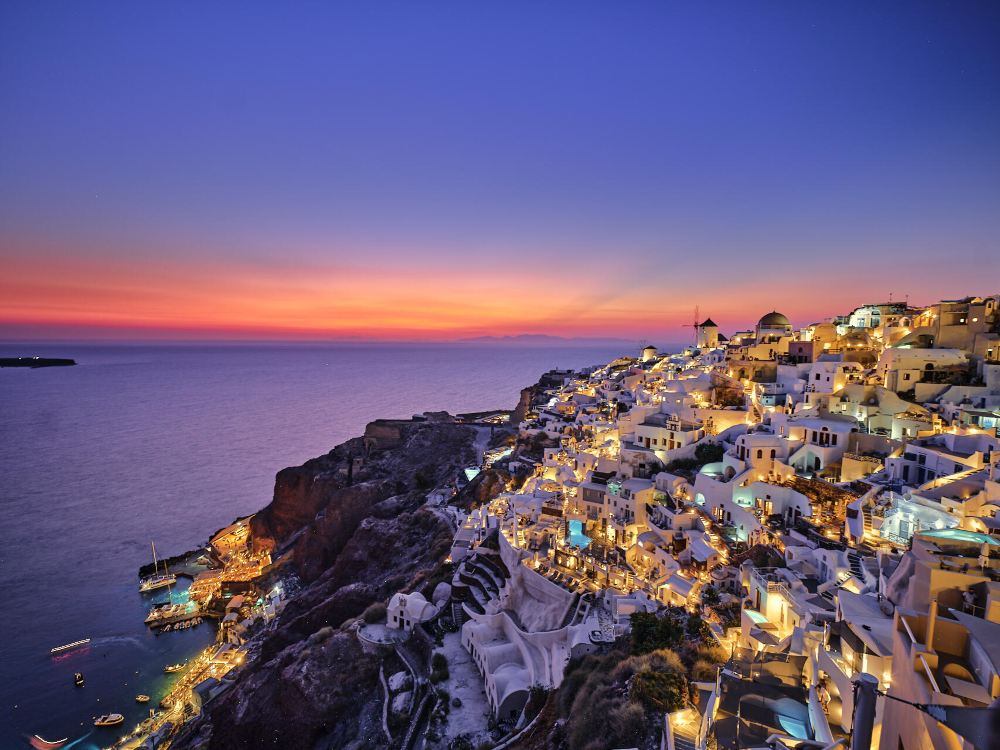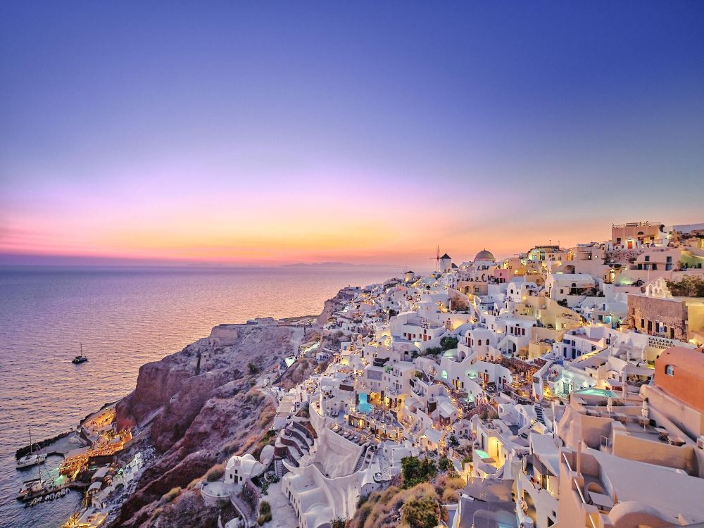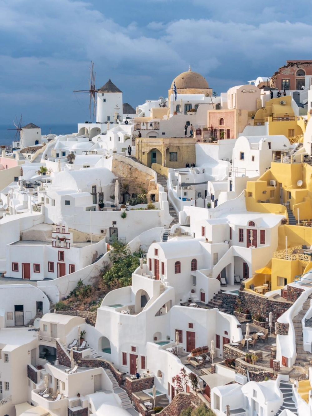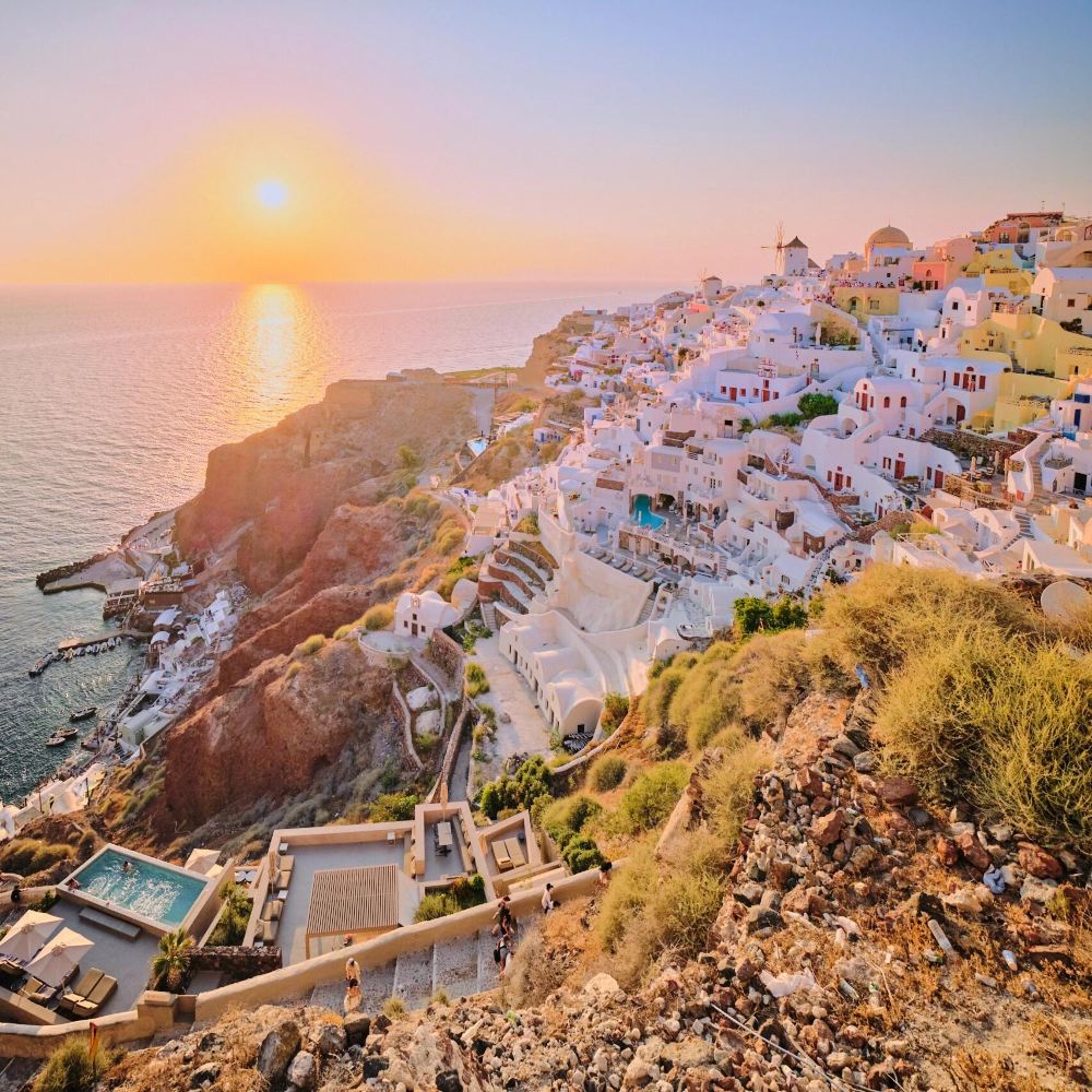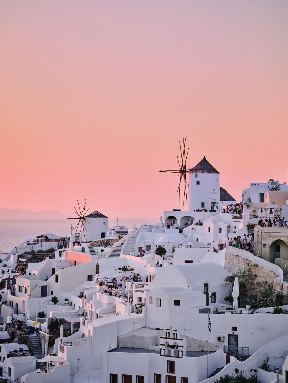 ▲ At the northern tip of Santorini lies the large town of Oia. Unlike the more commercialized Fira, most visitors come here primarily to admire the sunset. It is said that one can witness the "sunset sinking into the Aegean Sea" here. The sunset views in Oia have inspired many artists and photographers. The white houses, blue-domed churches, and traditional windmills bathed in the glow of the setting sun never fail to captivate.