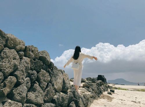 ▲ A beach where the blue sky merges with the sea