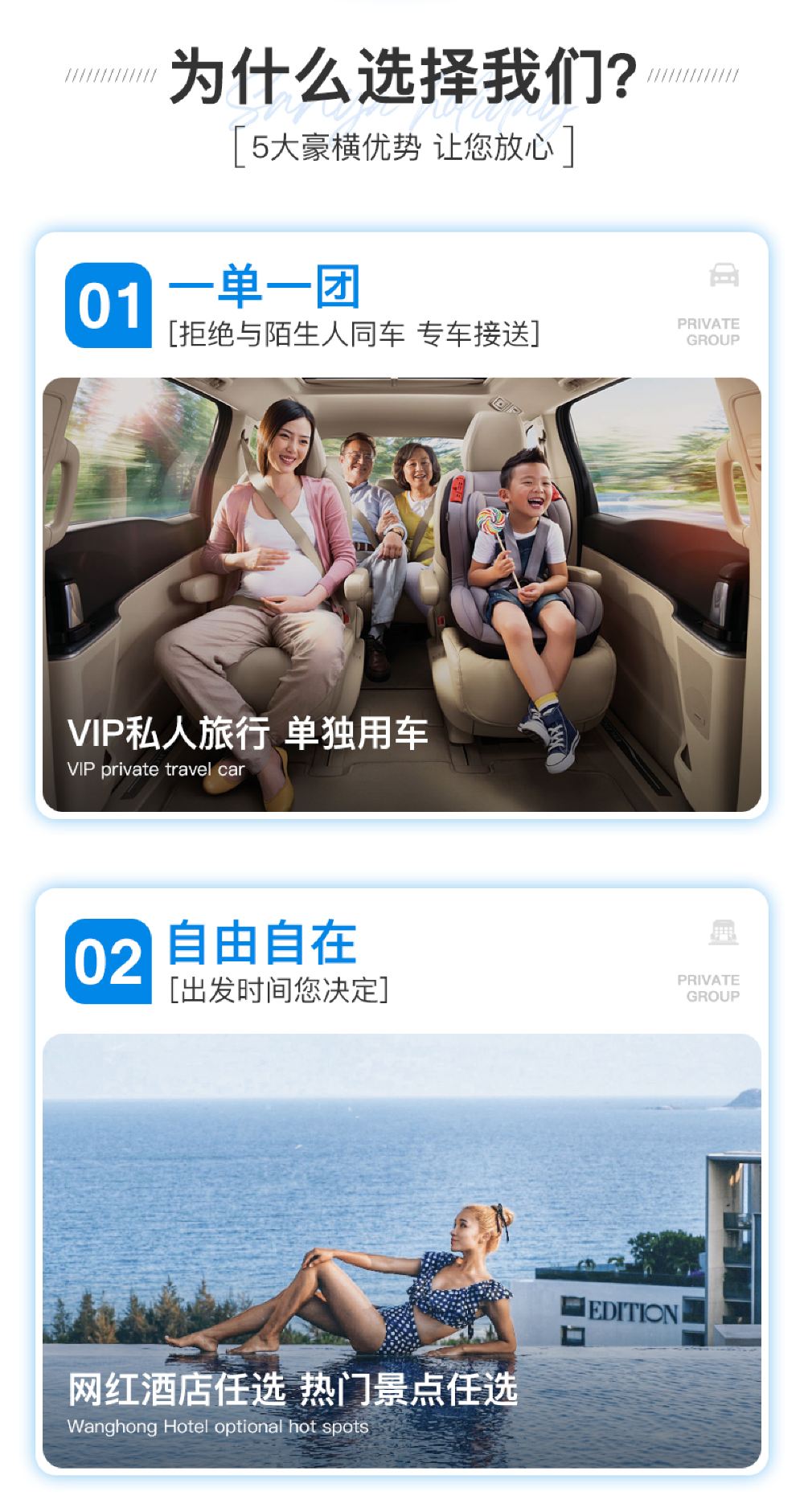 Flexible departure time, professional tour drivers, familiar with routes, and patient service!