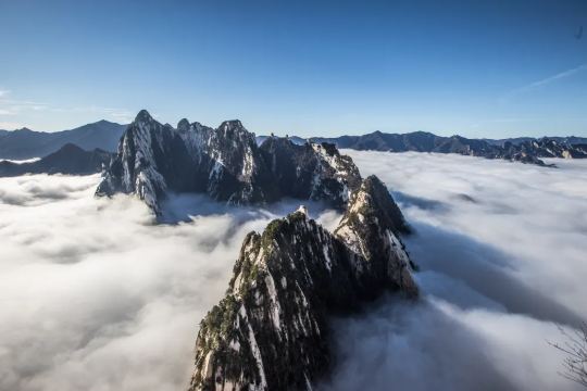 2. Five Peaks Standing Side by Side: Mount Hua is composed of five main peaks, which resemble a lotus flower ("Hua" was an ancient variant of "flower"), hence the name.