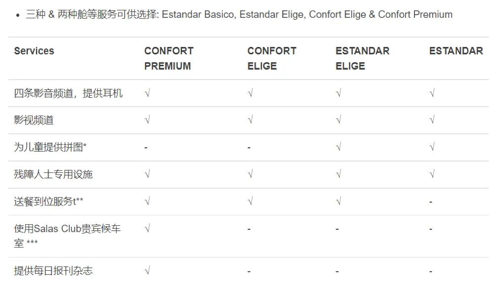 • Elige fares in Estanda class allow for a cold meal (additional application and payment required, currently unavailable for reservation)