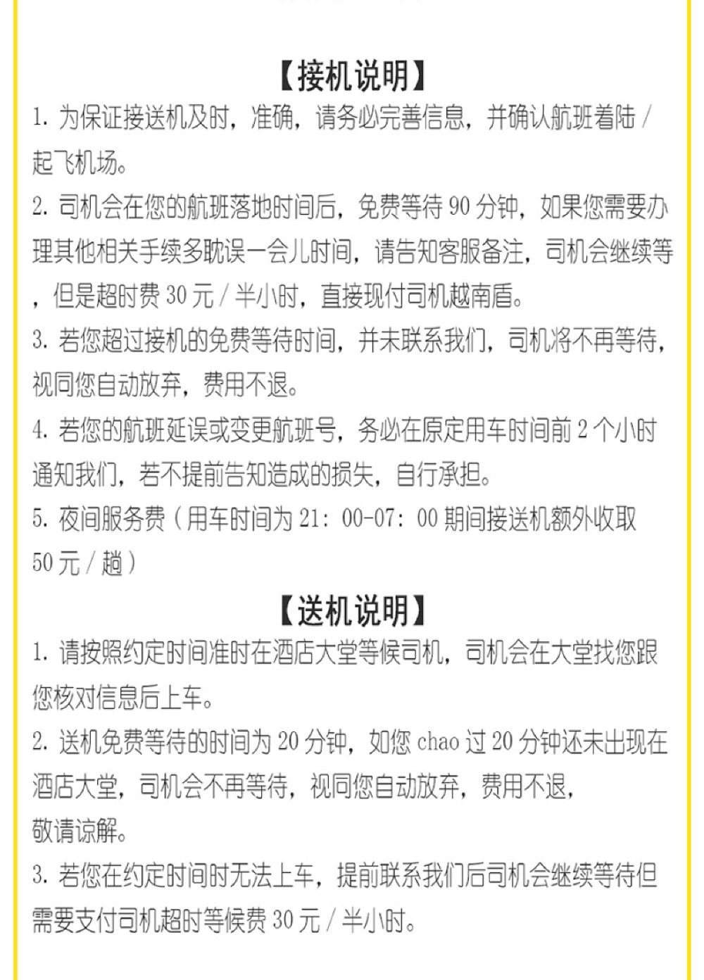 2. The free waiting time for airport drop-off is 20 minutes. If you do not appear within 20 minutes,