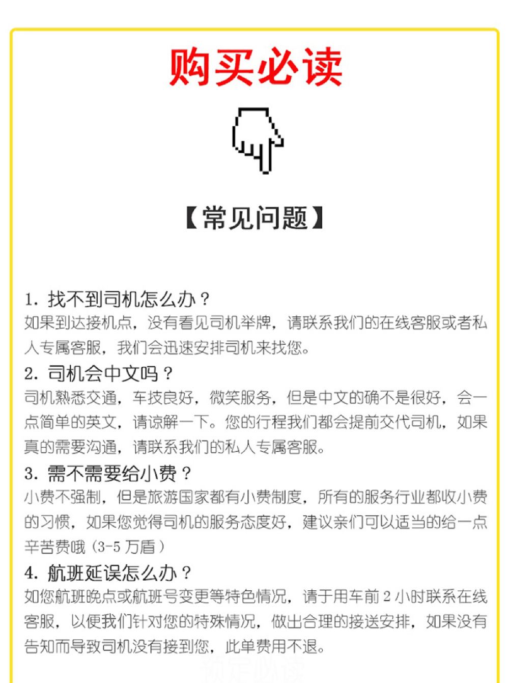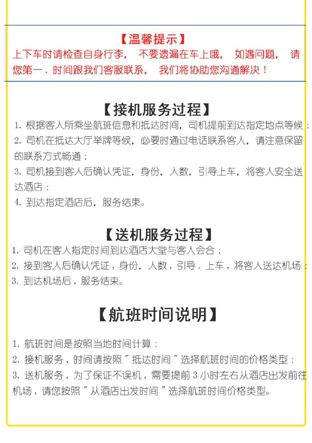 1. To ensure timely and accurate airport transfer, please complete all information and confirm the flight landing/
