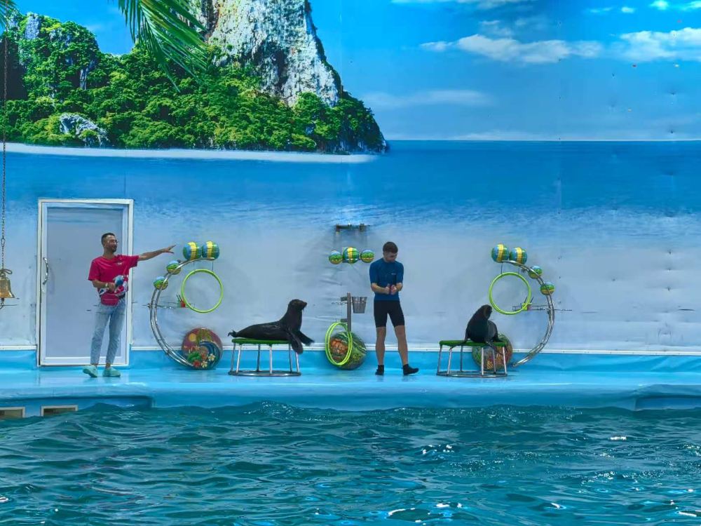 Here, you'll see adorable dolphins skillfully spinning hula hoops, gracefully leaping through the water, or playfully hiding underwater. The charming dolphins paired with their humorous trainers create an absolutely spectacular performance that keeps the audience laughing throughout.