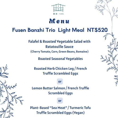 'Trio' in Italian signifies a harmonious blend, which at 'Fusen' embodies multiple meanings. It symbolizes the Atayal brothers, the elements of 'music, gourmet cuisine, and hot springs' within the venue, as well as the culinary combination of 'indigenous flavors + local ingredients + healthy vegetarian dishes'.