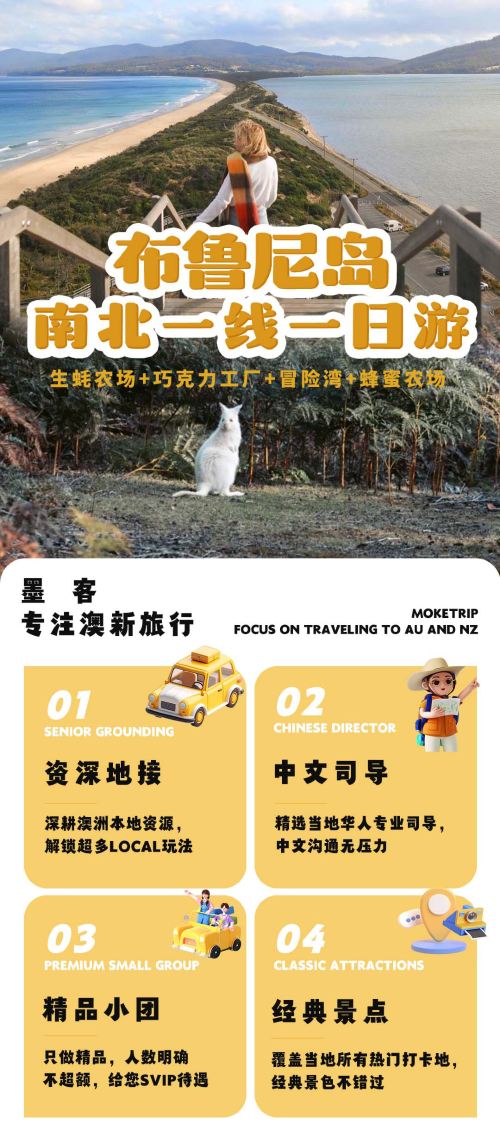 [Professional Guide] Equipped with a professional Chinese-speaking guide, the tour provides detailed explanations of Bruny Island's geological formation, indigenous history, and ecological conservation throughout the journey.