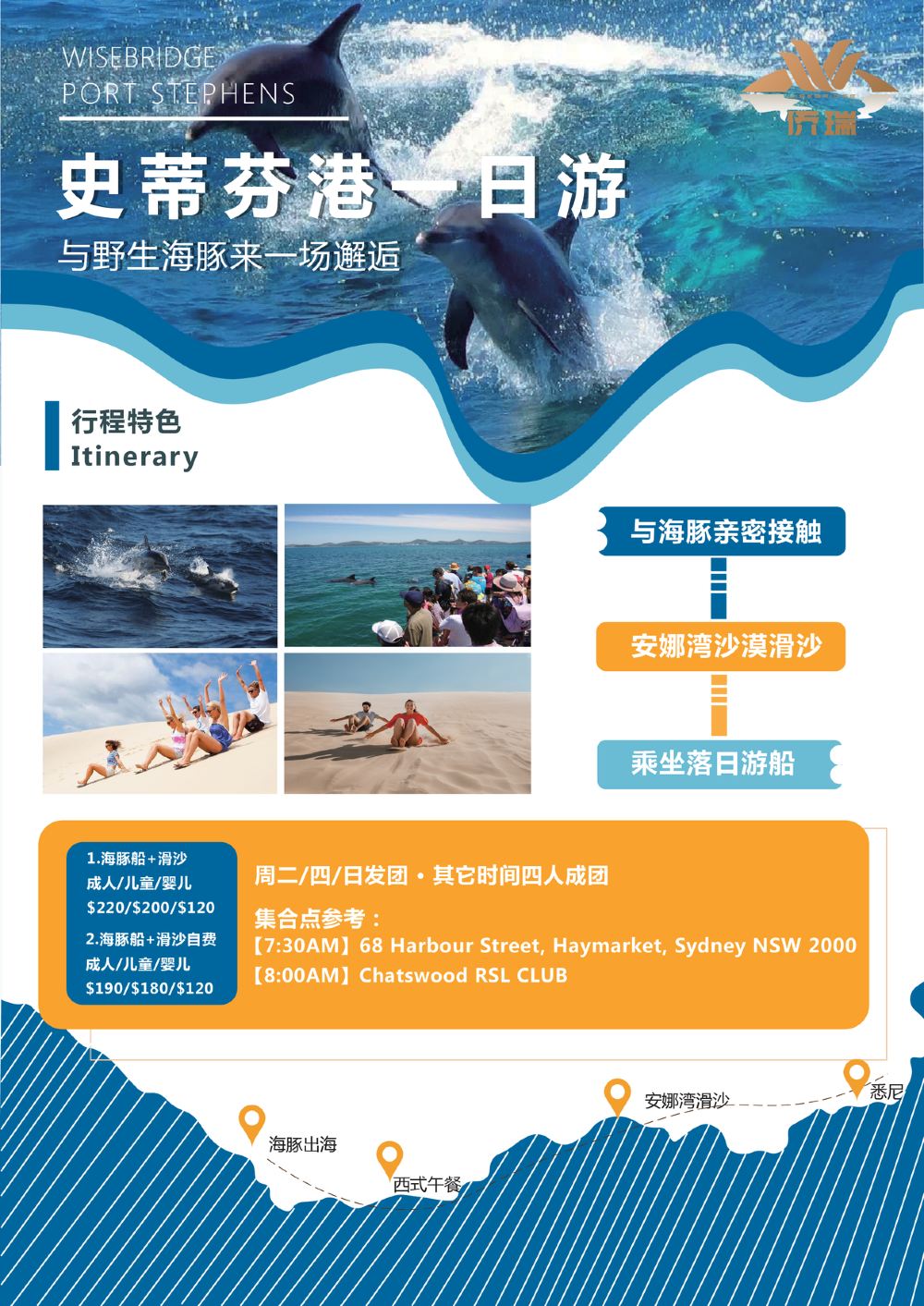 Sydney Port Stephens Dolphin Watching + Anna Bay Sandboarding Day Tour [Including Lunch/Minimum 4 Persons]