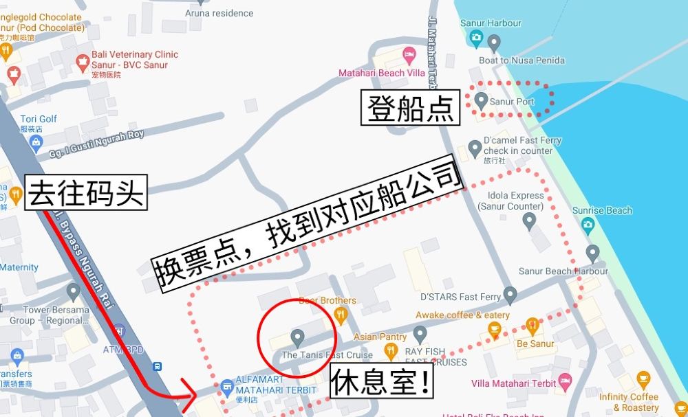 2. If the shipping company is Tanis, please arrive at the blue Trip.com logo at the VIP lounge of Sanur Pier 45 minutes before departure time to redeem ticket and wait for boarding
