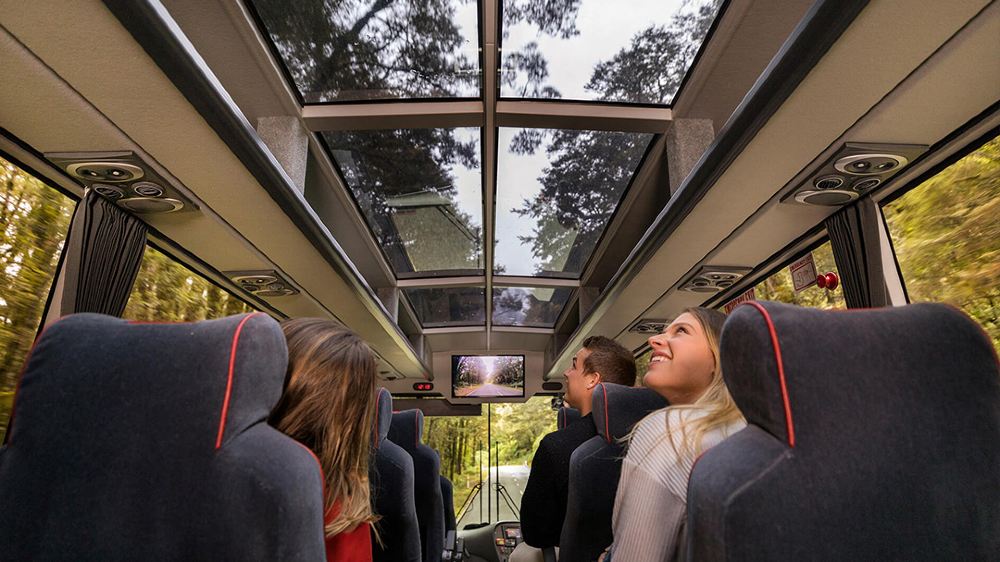 Take a panoramic sightseeing bus along the picturesque Lake Wakatipu in Queenstown and enjoy the beautiful mountain views.