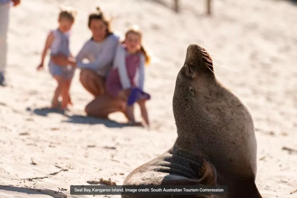 Families with kids love to play, walking with cute and rare wild sea lions at Seal Bay Conservation Park.