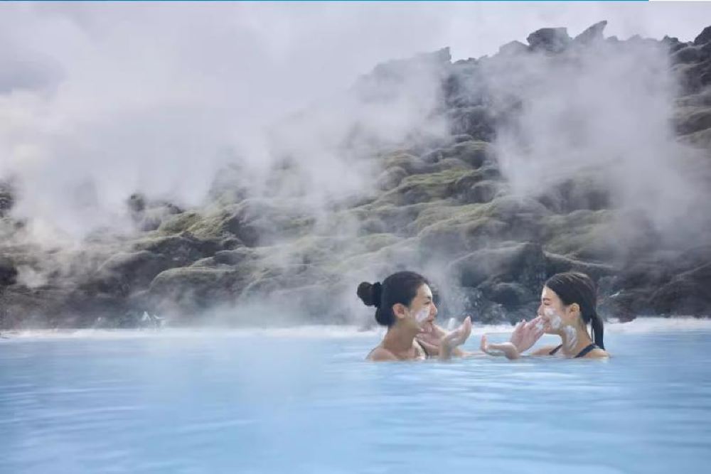 The Blue Lagoon's water temperature ranges between 37°–40°C (98°–104°F). Pregnant women can bathe in the Blue Lagoon, but it's important for each individual to assess their physical condition before entering.