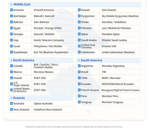 Some mobile payment, banking, or streaming apps may apply regional restrictions or enhanced security checks when used abroad. These measures are managed by the app providers and do not indicate a network issue. We recommend confirming your apps' access policies before traveling to ensure uninterrupted service.
