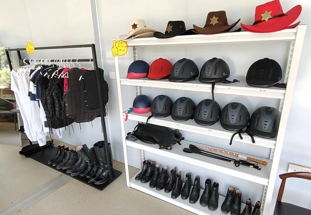 inclusions: equestrian equipment - helmet, vest, leg guards, gloves, whip, etc.