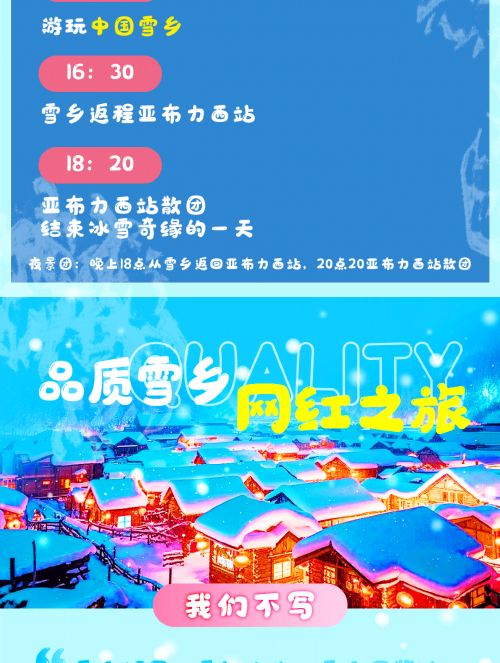 Package A is a regular daytime group tour that does not include the Snow Town night view. The return time is relatively early, with departure back to the city starting at 16:20. The return high-speed train is scheduled to depart at 19:01 (we recommend choosing the night view tour).