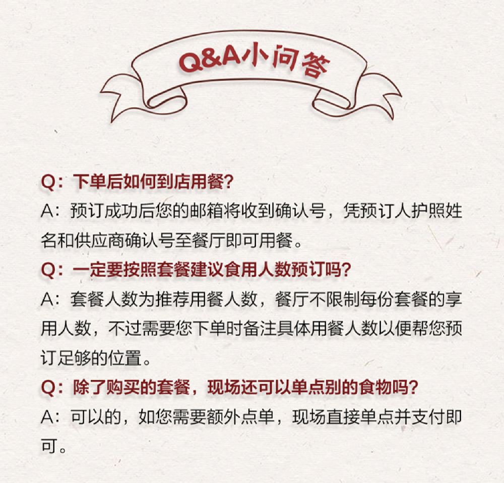 4. Verification method: Please dine at the restaurant using the passport name of the booker and the supplier confirmation number. (Please note: The confirmation number here is not the booking number placed on the platform, but a special number from the restaurant. The confirmation number will be sent via email, so please check your inbox.)