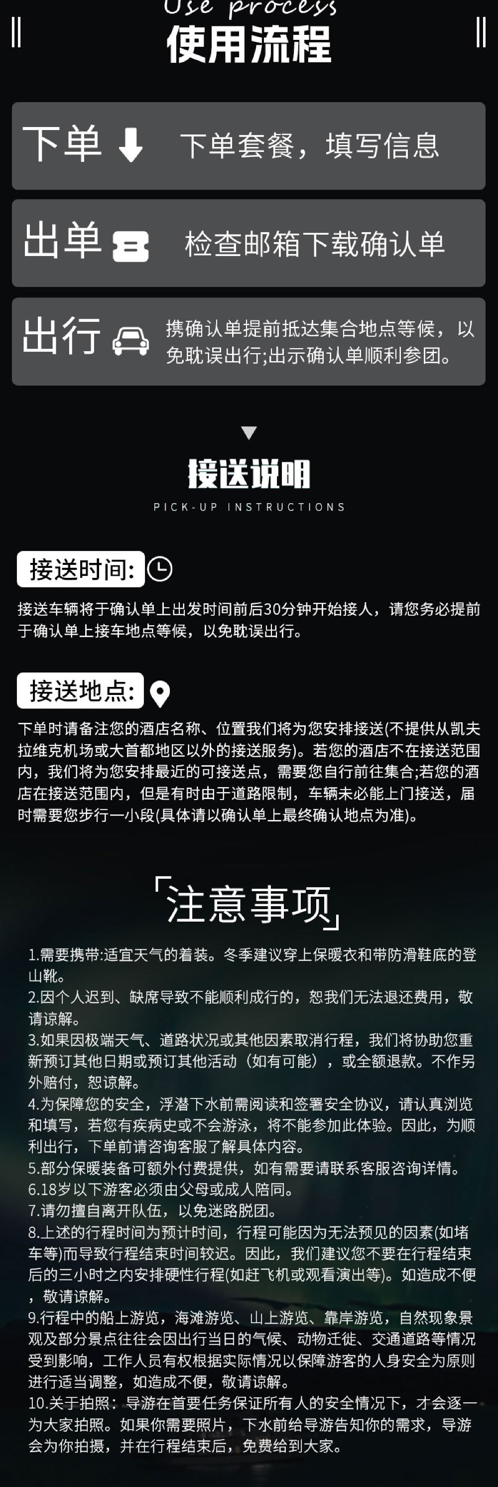 During peak travel season or special circumstances, the tour departure time may be earlier or slightly later than what is listed on the itinerary (the actual departure time will be decided by the service staff). Please be prepared in advance.