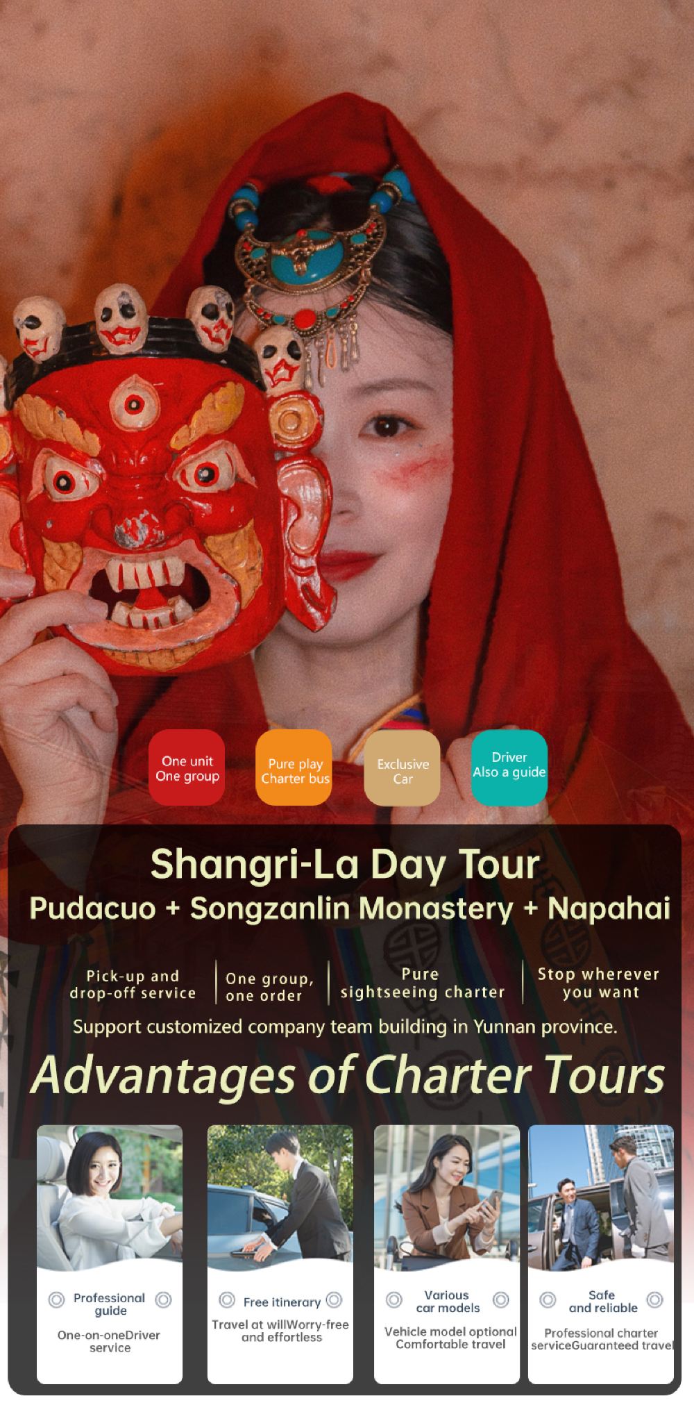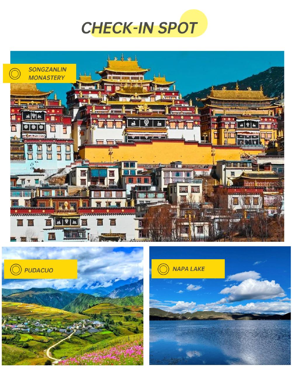 Featured attractions: Songzanlin Monastery + Pudacuo + Napahai