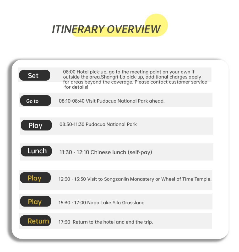 [Private charter] Shangri-La Songzanlin Monastery + Pudacuo + Napahai (Yila Grassland) one-day tour