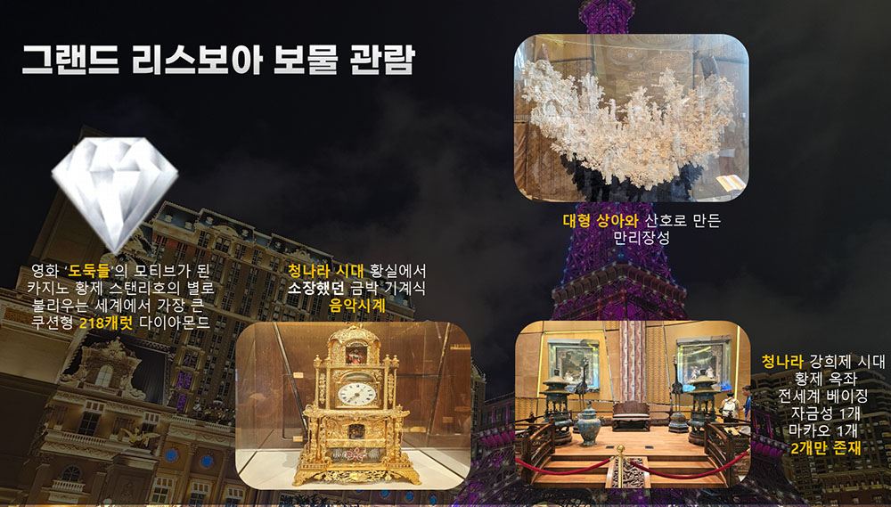 Meeting at the Armillary Sphere in the Venetian Main Lobby - Wynn Palace (if the waiting line is long, you cannot ride the fountain show and Sky Cab) - Take the monorail - Get off at Galaxy Resort - Watch the Galaxy Diamond Show - Take the shuttle