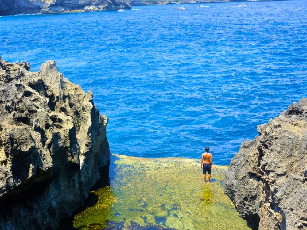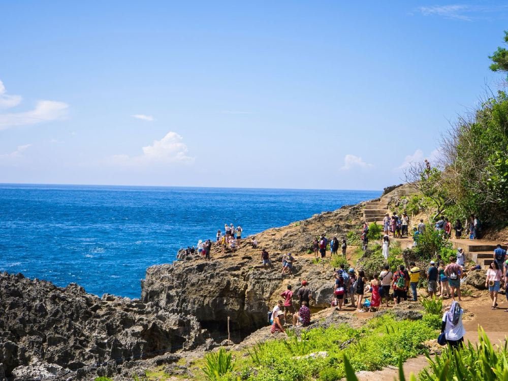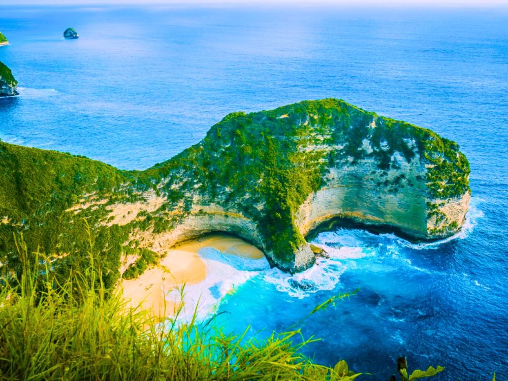 Enjoy the fun 45-minute speedboat ride to Nusa Penida, where a driver will be waiting at the ferry drop-off point. Set off and get ready to be awed all day by a series of breathtaking discoveries. The first stop is Broken Beach, a small cove locally known as Pantai Pasih Uug. Broken Beach is a naturally formed lagoon, a circular hole in a rocky outcrop that appears at first glance to be entirely enclosed by cliffs. Sip on a coconut at a nearby stall and wonder at this natural spectacle, watching clear water drift in from the ocean beyond. From the towering heights of Broken Beach, head closer to the water at Angel's Billabong. This natural “infinity pool” is a lagoon framed by staggered and jagged volcanic rocks. The water is clear enough to see the strange patterns of rock formations on the pool floor.