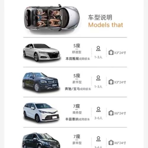 One-way transfers are point-to-point services, while private charter services are available for 10 hr per day. Overtime charges of 5,000 JPY/hr are payable directly to the driver.