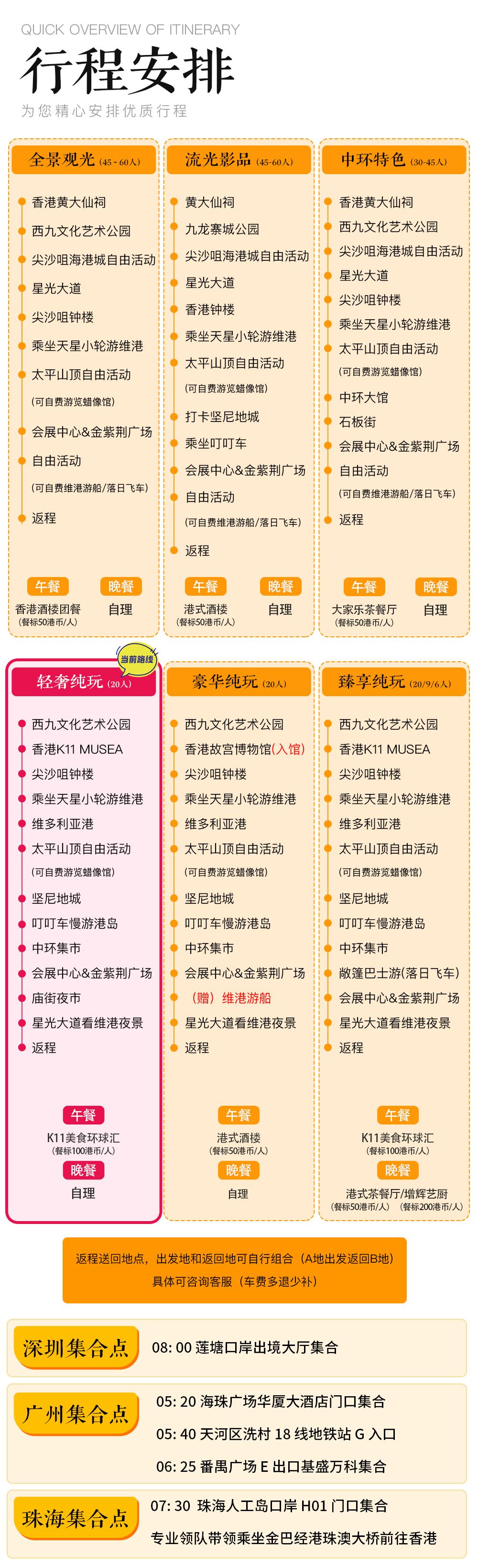 The current itinerary is a semi-luxury pure-play package for up to 20 people. Select the corresponding departure city to choose the matching travel package.