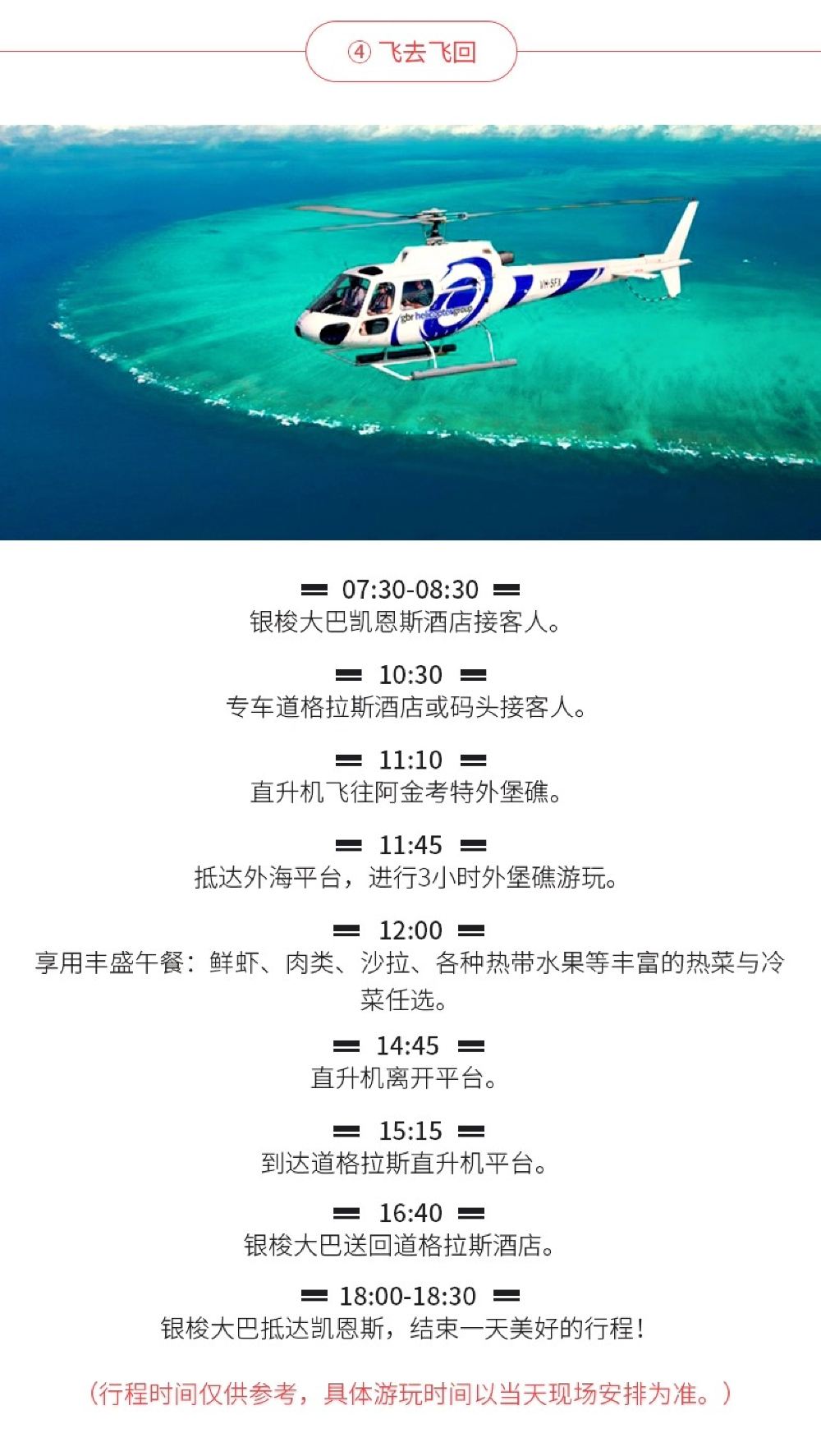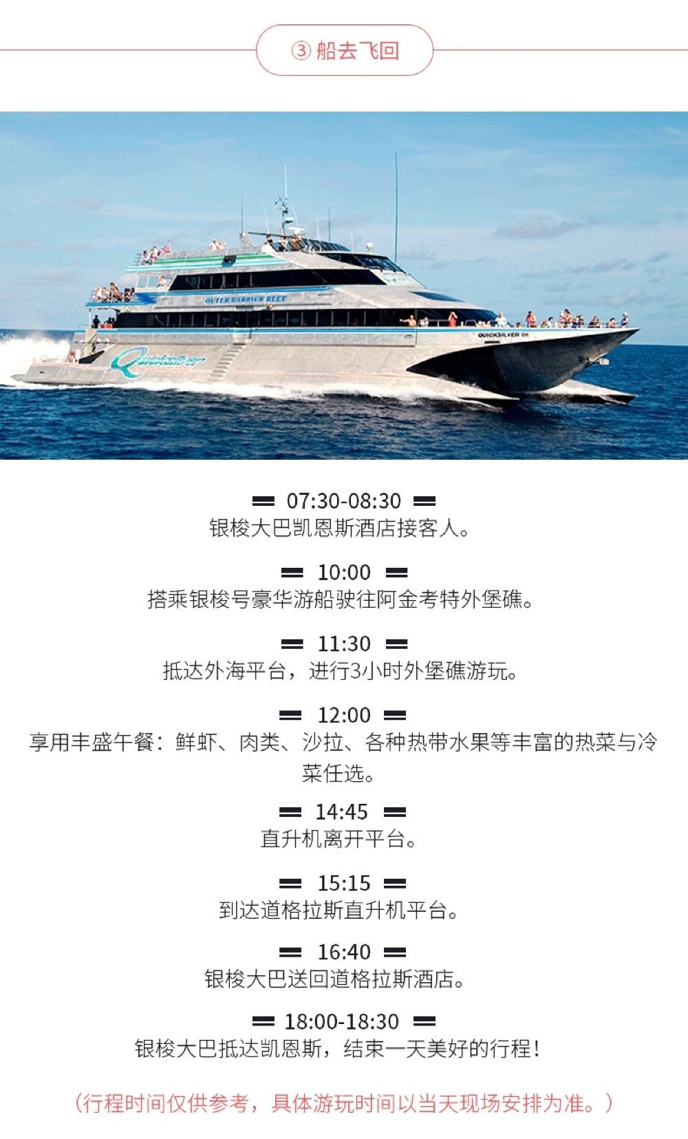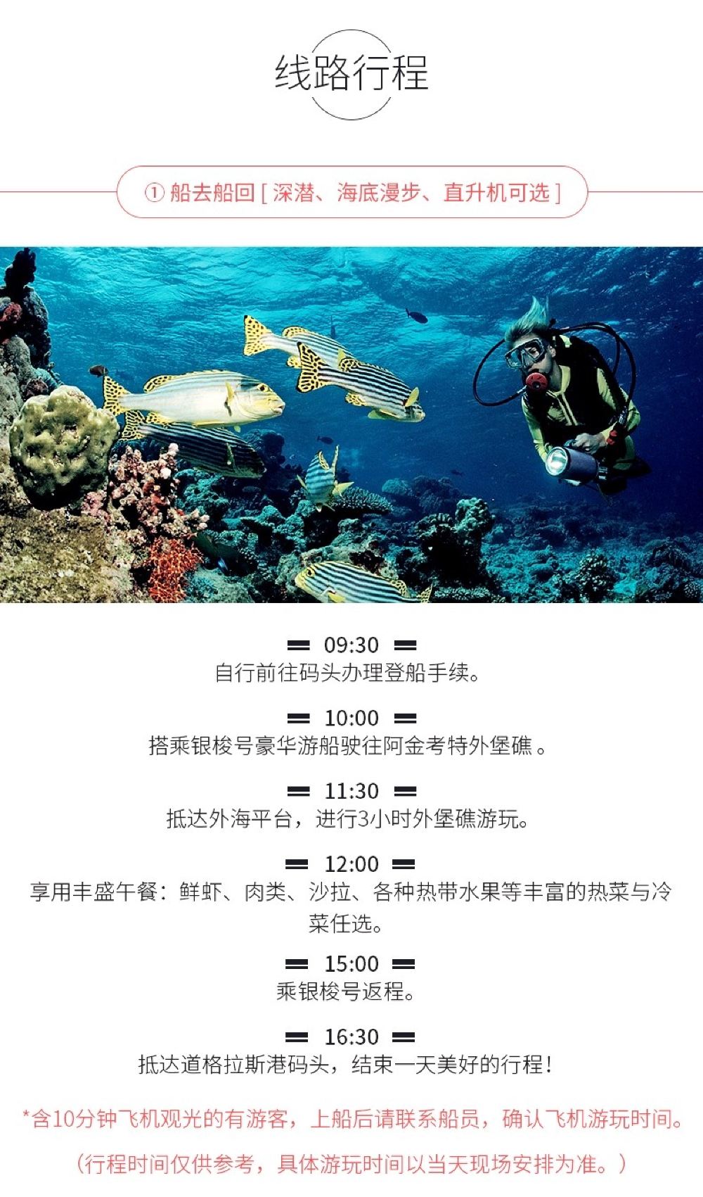 The offshore platform is located on the edge of Agincourt Reef, featuring comprehensive facilities and offering a variety of activities.