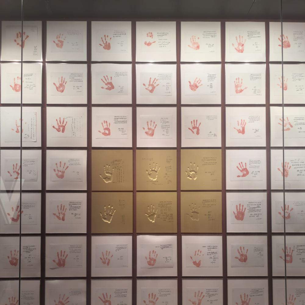 ▲ Handprints left by veterans of the Battle of Shanghai.