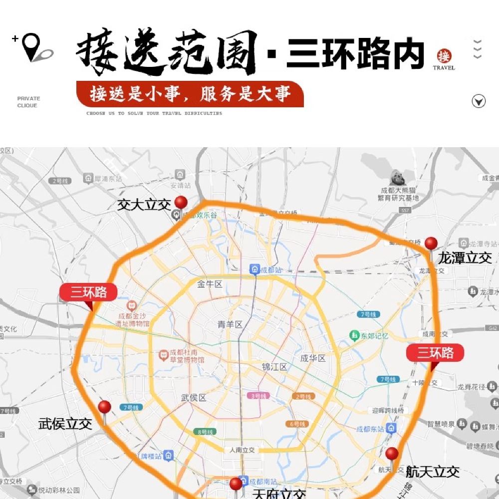 Return transfer to any location within the Third Ring Road or hotel in Chengdu city area