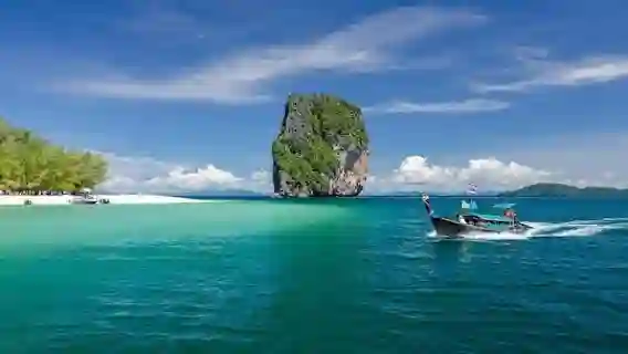 The excursion allows you glide across the Andaman Sea on a traditional long tail boat, stopping at top snorkelling spots and unspoiled beaches