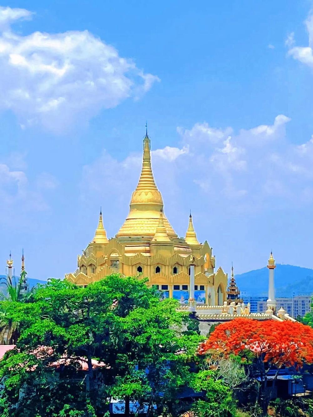 ▲ The Little Mongla Golden Pagoda in Myanmar is located on Jinlian Mountain in Mongla, jointly built by border residents of China and Myanmar to commemorate the peace, prosperity, and enduring friendship between the two regions. Situated on Myanmar's territory, we can only view it from a distance, where visitors from Myanmar can be seen on the golden pagoda, making it a perfect spot for photo opportunities.