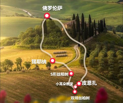 ▲ Private Pure Play Small Group Premium Chinese-speaking Driver In-depth Exploration Itinerary Pienza (Italian: PIENZA) is a municipality in the province of Siena, Tuscany, central Italy, adjacent to Montalcino, known as the "touchstone of Renaissance urban life." In 1996, it was declared a UNESCO World Heritage Site. Val d'Orcia is an area in the province of Siena, dotted with countless inns, hotels, hospitals, and post stations throughout the valley. For centuries, it has provided convenience to a large number of visitors. Chapel Vitaleta is a small chapel built in 1590, located on a hillside. It got its name from the cypress trees on both sides of the chapel, which resemble a pair of adorable elf ears. After appearing for just a few seconds in the movie "Under the Tuscan Sun," it quickly gained popularity.