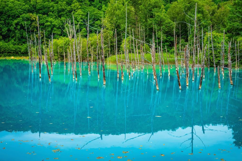 ▲ Shirogane Blue Pond (Aoiike) This blue-green pond was formed by special minerals, with submerged dead trees and reflections creating a unique view. A wooden viewing deck surrounds the pond, offering diverse visual effects as the light changes throughout the day.