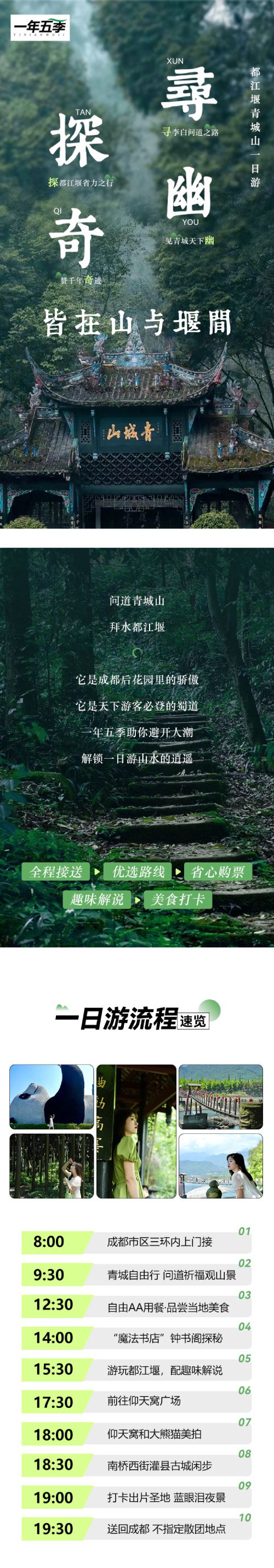 Then, take a downstream tour of the Dujiangyan Irrigation System from Qinyan Building, saving energy without mountain climbing.