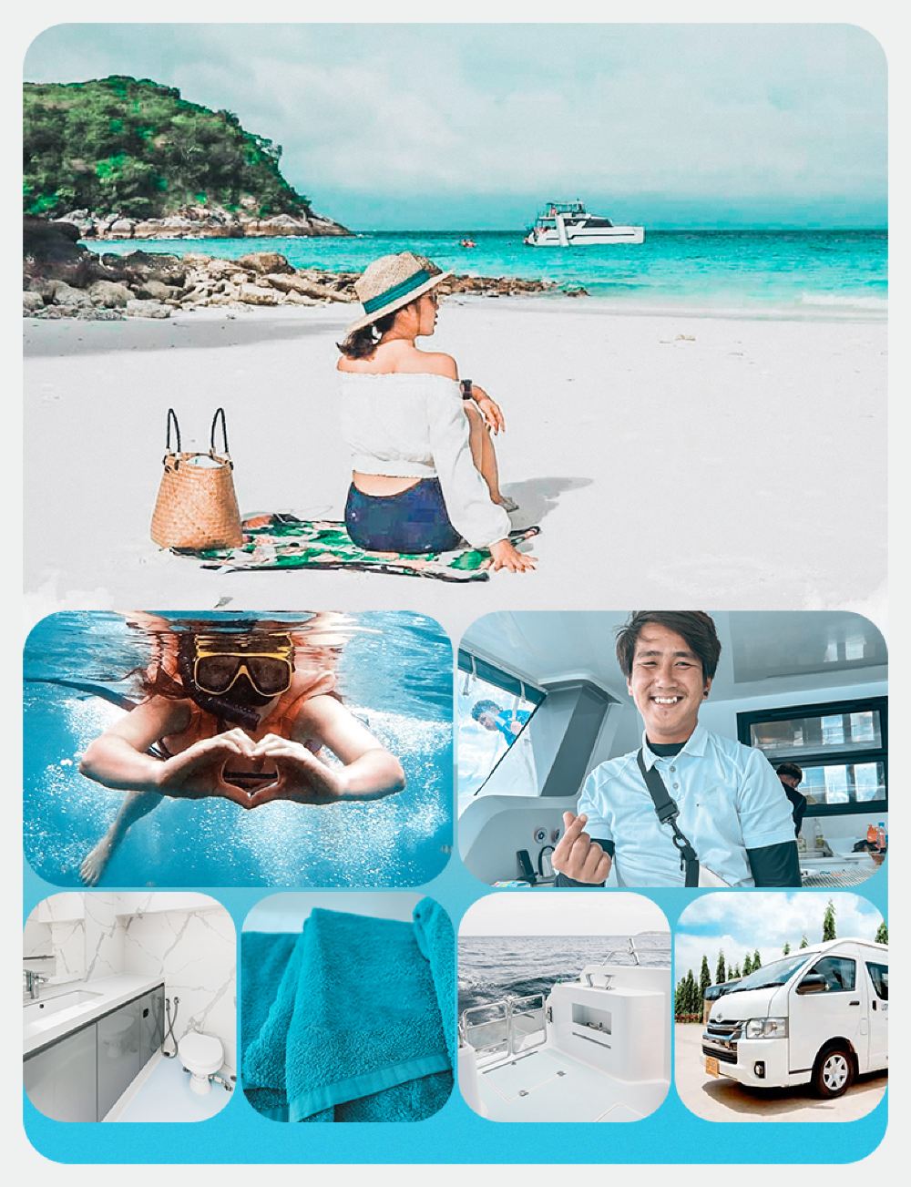 ● Comprehensive considerate services, including professional photographers, free island-wide shuttle, dual bathrooms + full snorkeling equipment (life jackets, diving masks, snorkels, disposable mouthpieces)