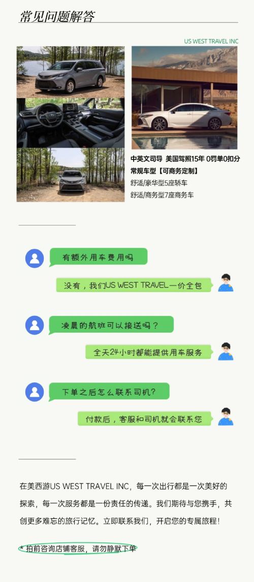 Licensed company | Full insurance coverage, complete licenses to ensure your safety in the U.S.; Bilingual customer support, 24/7 service for emergency assistance