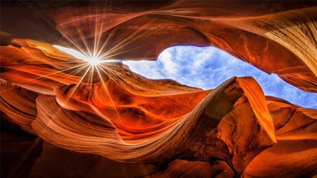 Upper Antelope Canyon features a flat terrain with an interior shaped like the letter "A." At noon, sunlight beams directly through the canyon's opening, illuminating the entire passage and making the lines on the rock walls appear to flow like swaying silk skirts. Upper Antelope Canyon is famous for its iconic "Heaven's Light" phenomenon.