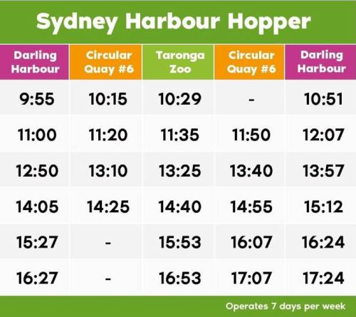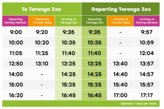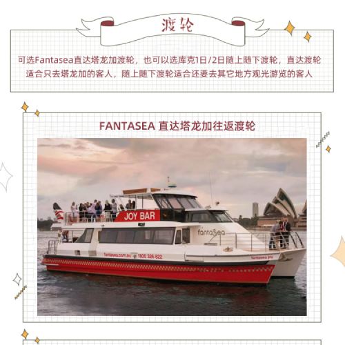 ●Departure Time Slot: The boats generally depart from each ticket redemption point pier around 9:00, with departures every half hour. The latest return time from Taronga Zoo is 16:30. The following ferry schedule is for reference only, and actual times may vary. Please refer to the official website's ferry timetable for the day: fantasea.com.au/timetable (especially during Christmas and New Year periods). Refund requests due to schedule changes will not be accepted.
