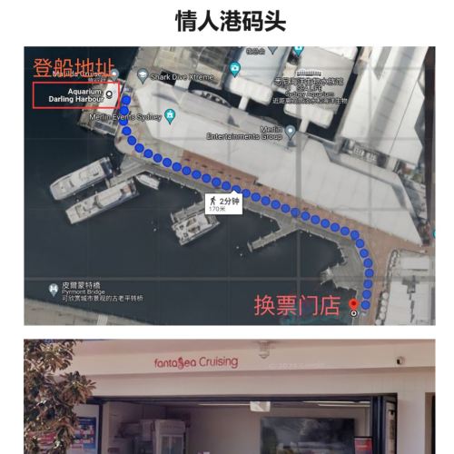 ●Ticket Redemption Time & Location 2: 8:30 AM - 6:00 PM: First, redeem your ticket at the ticket redemption store (Shop 2B, Wheat Road, Darling Harbour; the ticket redemption hall has a Fantasea sign); then, board at Aquarium Wharf in Darling Harbour.