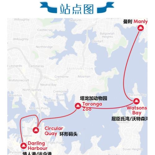 Note: Circular Quay is very close to the Opera House; Darling Harbour is near the city center. Watsons Bay and Manly are residential areas for Sydney locals and are not typically visited by visitors. Please choose the appropriate pier for boarding and disembarking based on your needs.