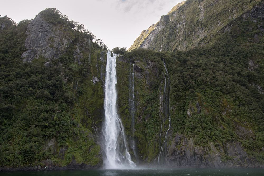 ▲ Lush primeval rainforests nestle against steep cliffs, while wildlife such as seals, penguins, and dolphins frequently visit these icy waters. The fjord is surrounded by towering mountains, with the striking Mitre Peak rising dramatically from its depths to a height of 1,692 meters.