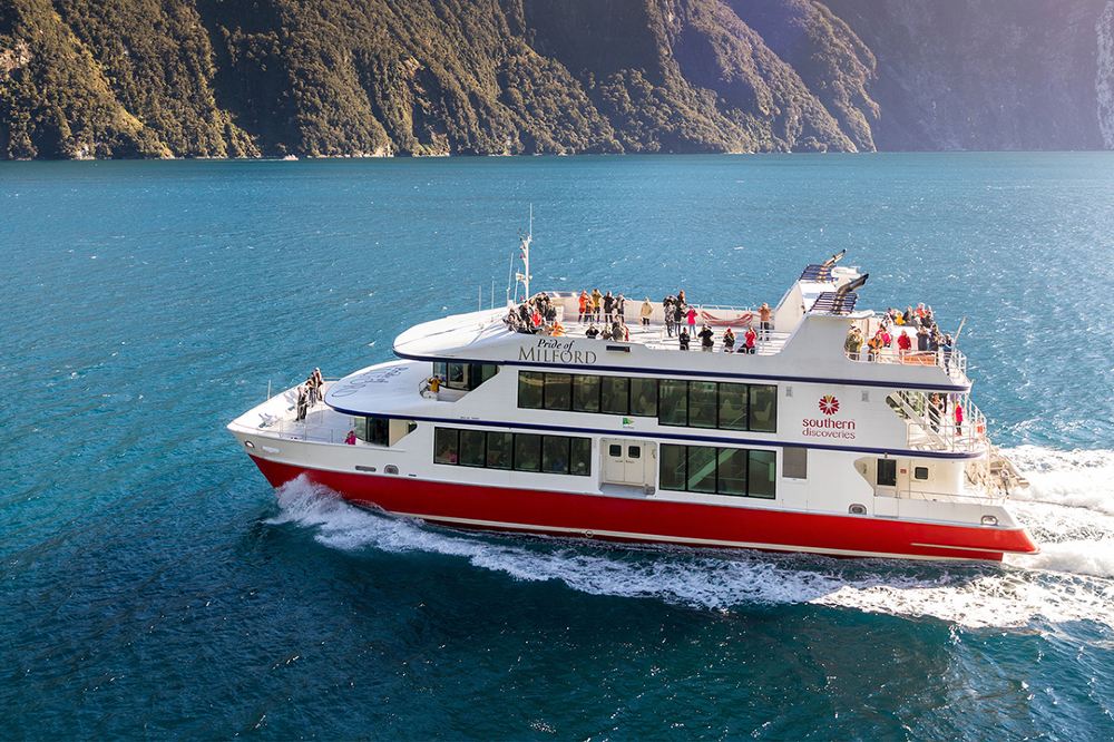 ▲ At Milford Sound, board the "Pride of Milford" cruise for a 1-hour 45-minute sightseeing journey to explore the magnificent scenery described by Rudyard Kipling as the "Eighth Wonder of the World." The cruise sails along the fjord to the Tasman Sea, where you'll admire glacier-carved cliffs and cascading waterfalls plunging into the ocean.