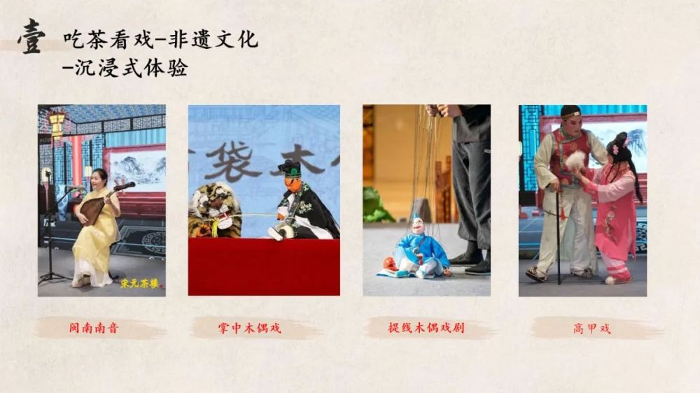 Performance + interaction approx. 60 min; Nanyin singing: "Three Thousand Taels of Gold"; String puppet show: "Little Monk Descends the Mountain"; Nanyin singing: "Entering the Garden"; Glove puppet show: "Wu Song Fights the Tiger", "The Great Name Mansion", "Celebratory Puppets".
