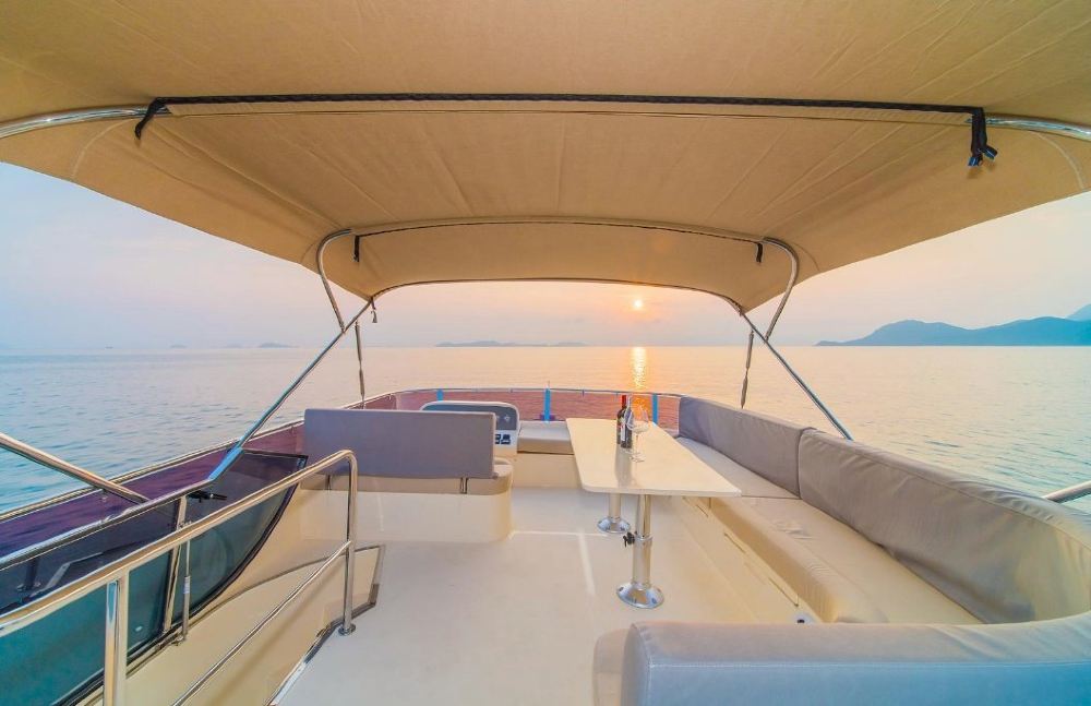 Minimum 1-hour booking: Includes complimentary fruits, drinks, mineral water, and life jackets. Enjoy a yacht self-driving experience (with a captain navigating to open waters where travelers can take the wheel for a memorable photo opportunity).