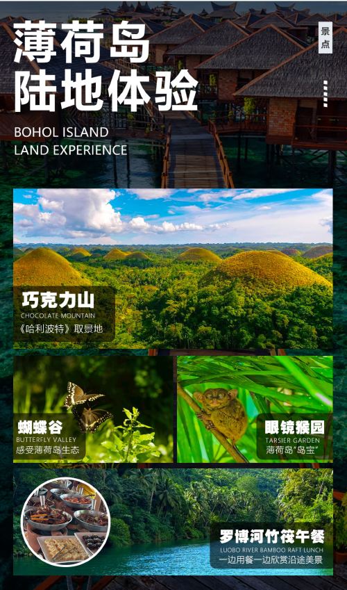 Bohol Island Chocolate Hills Land 1-Day Tour in Chinese with Lunch, Tarsier Sanctuary, and Butterfly Valley