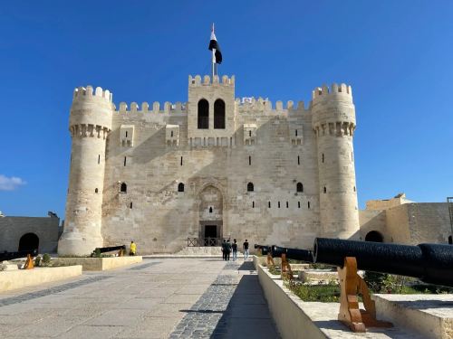 ▲ The castle was built on the site of the ancient Lighthouse of Alexandria, with its white walls beautifully contrasting against the azure sea, creating a picturesque scene. From the top-level observation deck, visitors can enjoy a 270° panoramic view of the Mediterranean and see the ruins of the ancient lighthouse. The castle also preserves historical relics from the Ottoman period, including cannons.