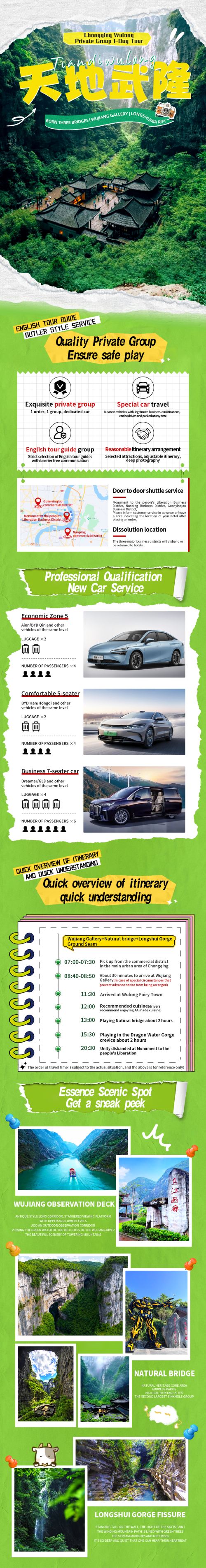 Private guide: Professional translation + experienced driver with 10 years of service. A local will show you around Wulong. All vehicles are new within 3 years, fully licensed, with guaranteed safety and hardware services.