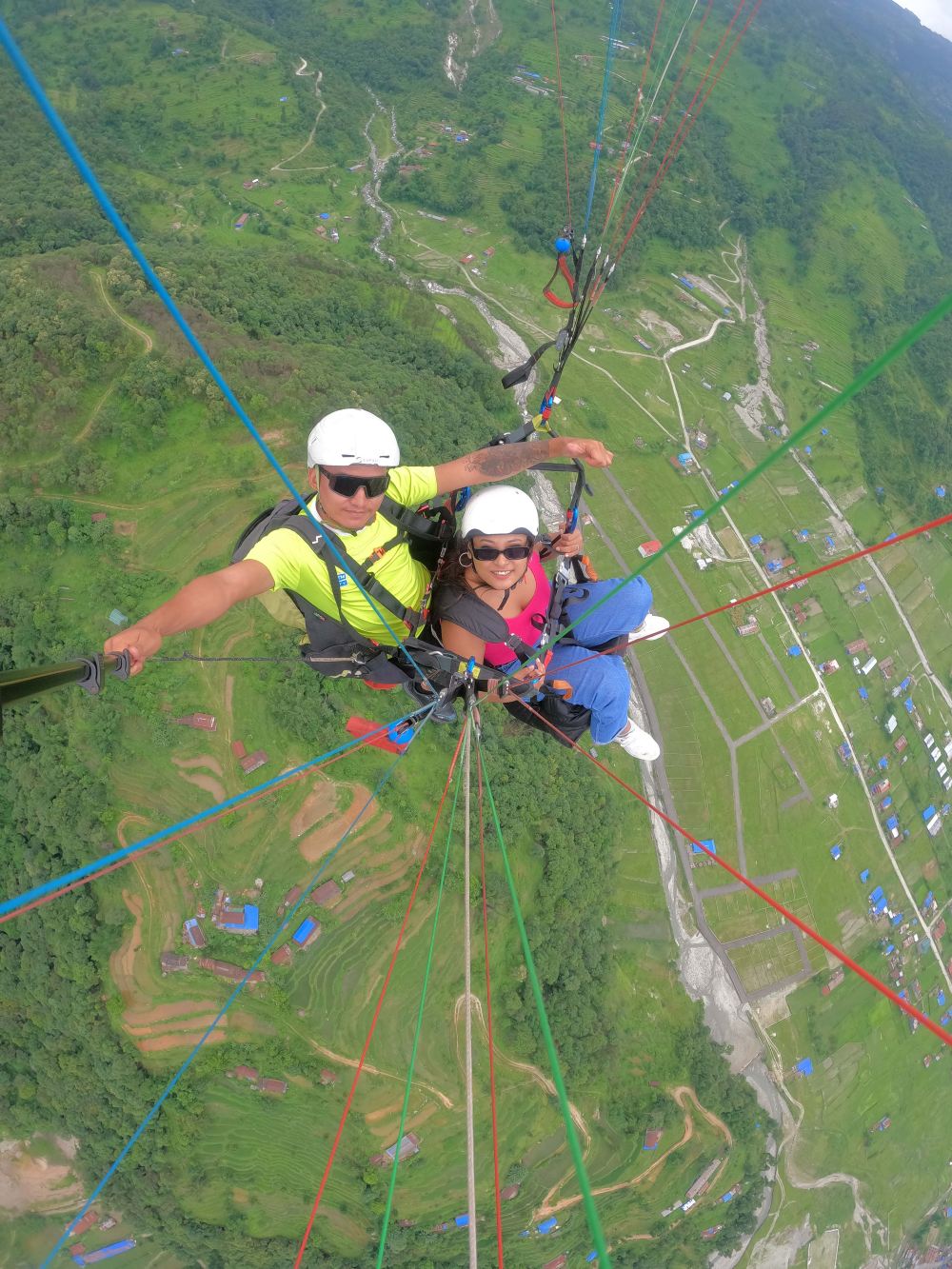 The flight usually begins from Sarangkot Hill, located about 1,600 meters above sea level, a popular viewpoint for sunrise and mountain vistas. After a short safety briefing from experienced pilots, you take off into the sky, soaring gracefully above Phewa Lake, lush green hills, and the picturesque city below. The breathtaking panorama of the Annapurna and Dhaulagiri ranges, combined with the reflection of snowcapped peaks on the lake, makes the experience truly magical.
